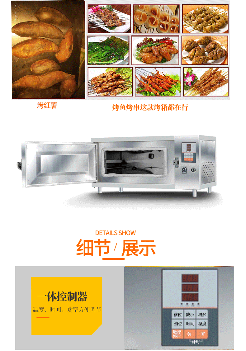 1.減少人工,320度恒溫烤制,避免人工操作的失誤,自動報警系統,減少專門負責烤魚的操作人員/避免人為因素產生的烤制效果
