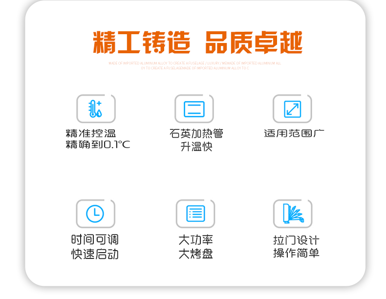 6.加熱管升級,采用新型耐用透明石英加熱管,烤箱更耐用.