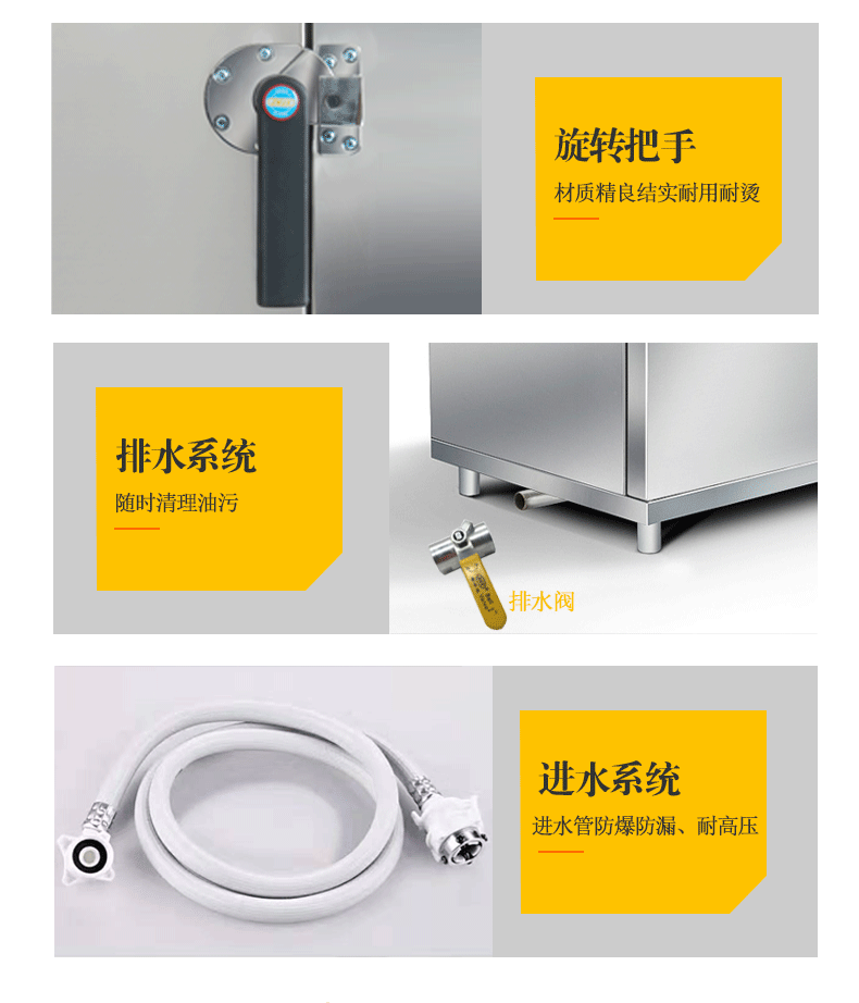 3,手柄:材質采用不銹鋼焊接,外形人性化設計,承受力大,操作方便,順手省力!